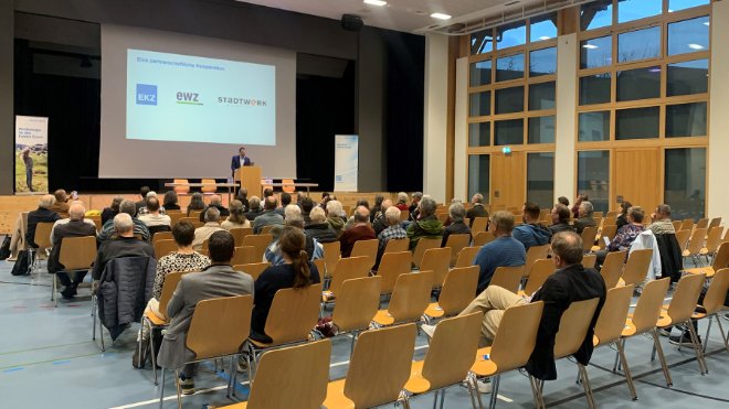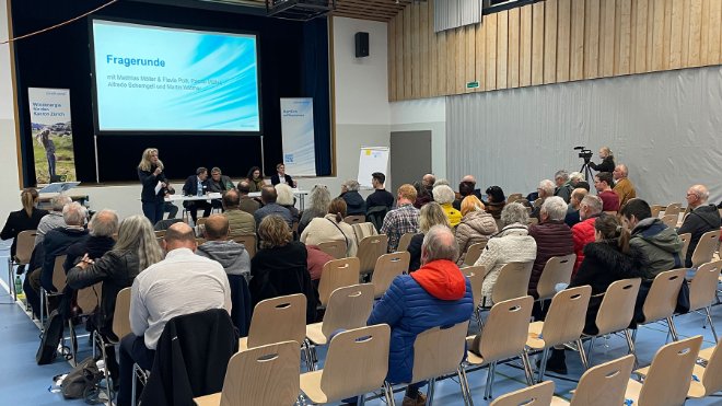 Anfang 2026 starten in den Gemeinden Wiesendangen, Rickenbach und Ossingen Windmessungen. Diese sollen die Windverhältnisse vor Ort erfassen und eine sachliche, faktenbasierte Grundlage für allfällige weitere Planungsschritte schaffen. Um die Bevölkerung über die bevorstehenden Aktivitäten zu informieren, hat Zürich Wind am 24.10., 3.11. sowie 6.11. zu öffentlichen Informationsveranstaltungen in den drei Standortgemeinden für Windmessungen eingeladen. Die gut besuchten Veranstaltungen boten den Teilnehmenden Raum für einen direkten Austausch mit den Fachpersonen. Neben Fragen zu den anstehenden Windmessungen wurden auch Themen wie mögliche finanzielle Beteiligungsmodelle, Auswirkungen auf Landschaft und Natur sowie technische Aspekte von Windenergieanlagen diskutiert.